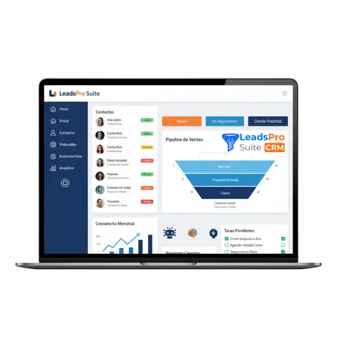 Tu centro de control: CRM, hosting de embudos y agentes de inteligencia artificial para automatizar seguimientos, gestionar contactos y cerrar ventas en piloto automático.